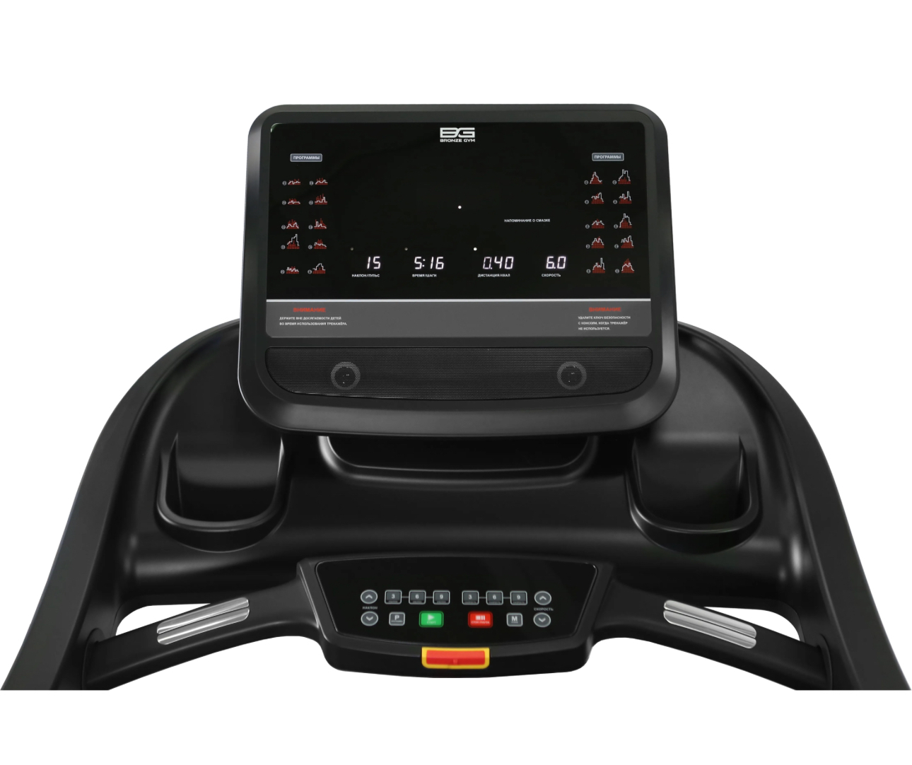 Дополнительные функции сенсорные датчики на поручнях для измерения пульса, русифицированные надписи на консоли и клавиши для удобства выбора программ и управления тренировкой, счет шагов, индикатор напоминания о необходимости смазки