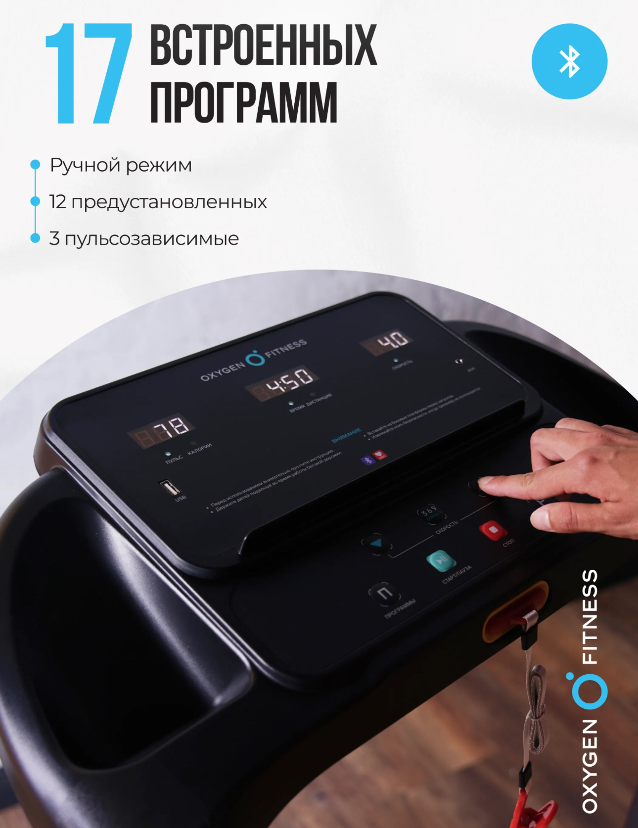 Спецификация программ ручной режим, 12 предустановленных, 3 пульсозависимые, жироанализатор