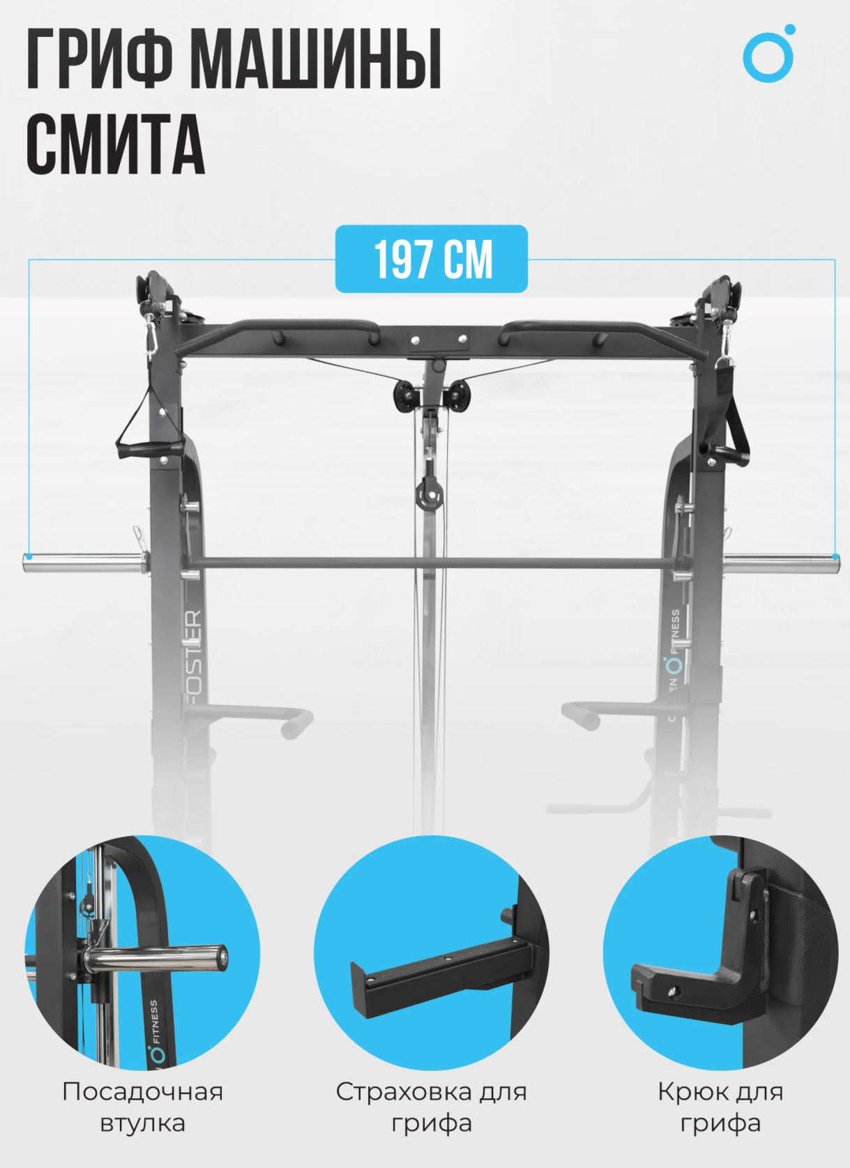 Машина Смита OXYGEN FITNESS FOSTER отличное решение для решения всех нужных задач в силовых тренировках. Тренажер обладает прочной и устойчивой конструкцией.